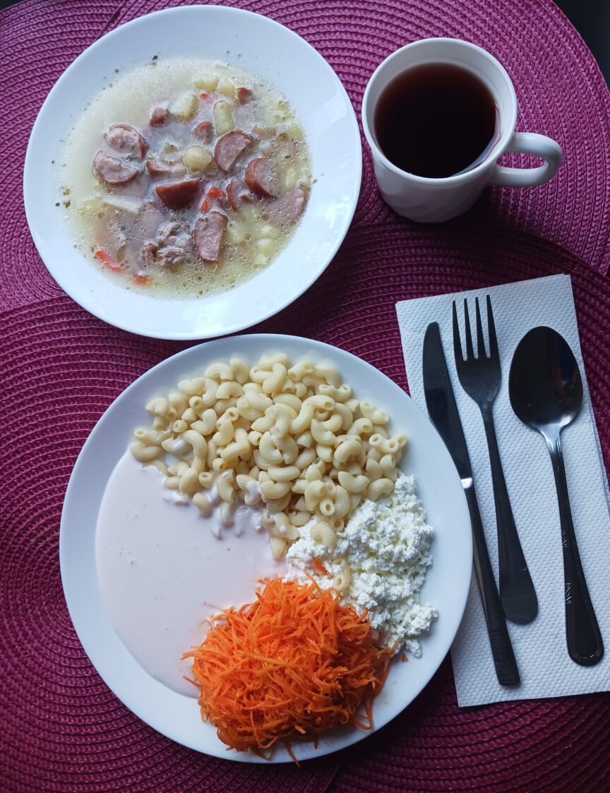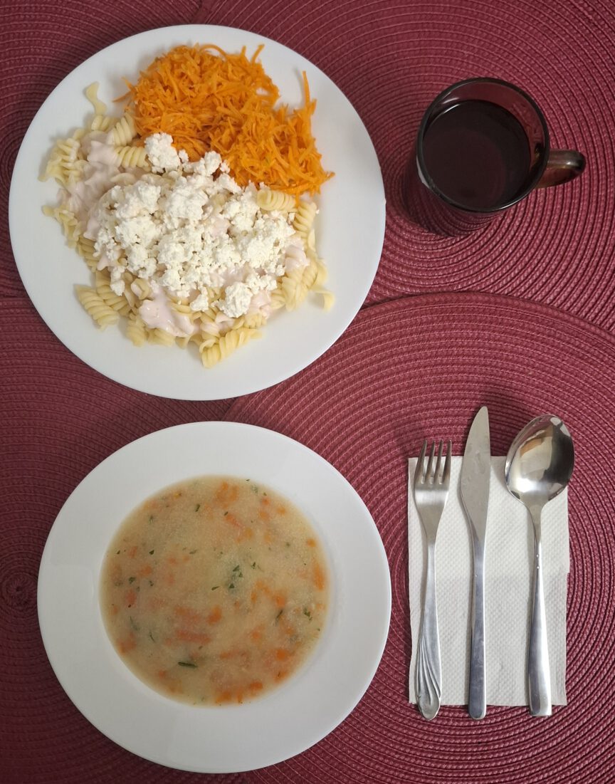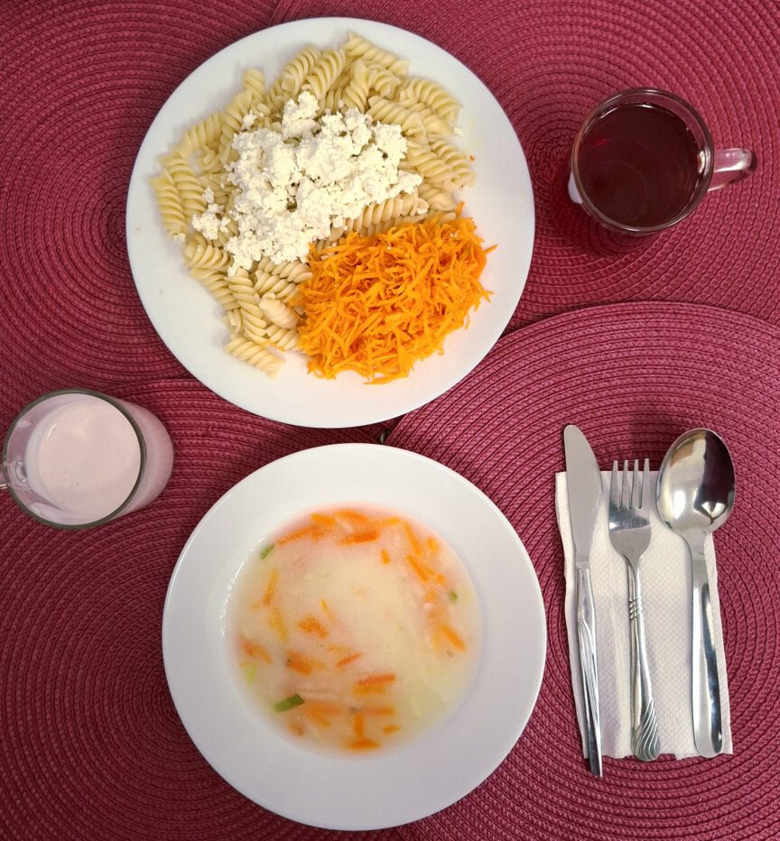 - karon z serem twarogowym 300g (w tym makaron 200g, ser twarogowy 100g)