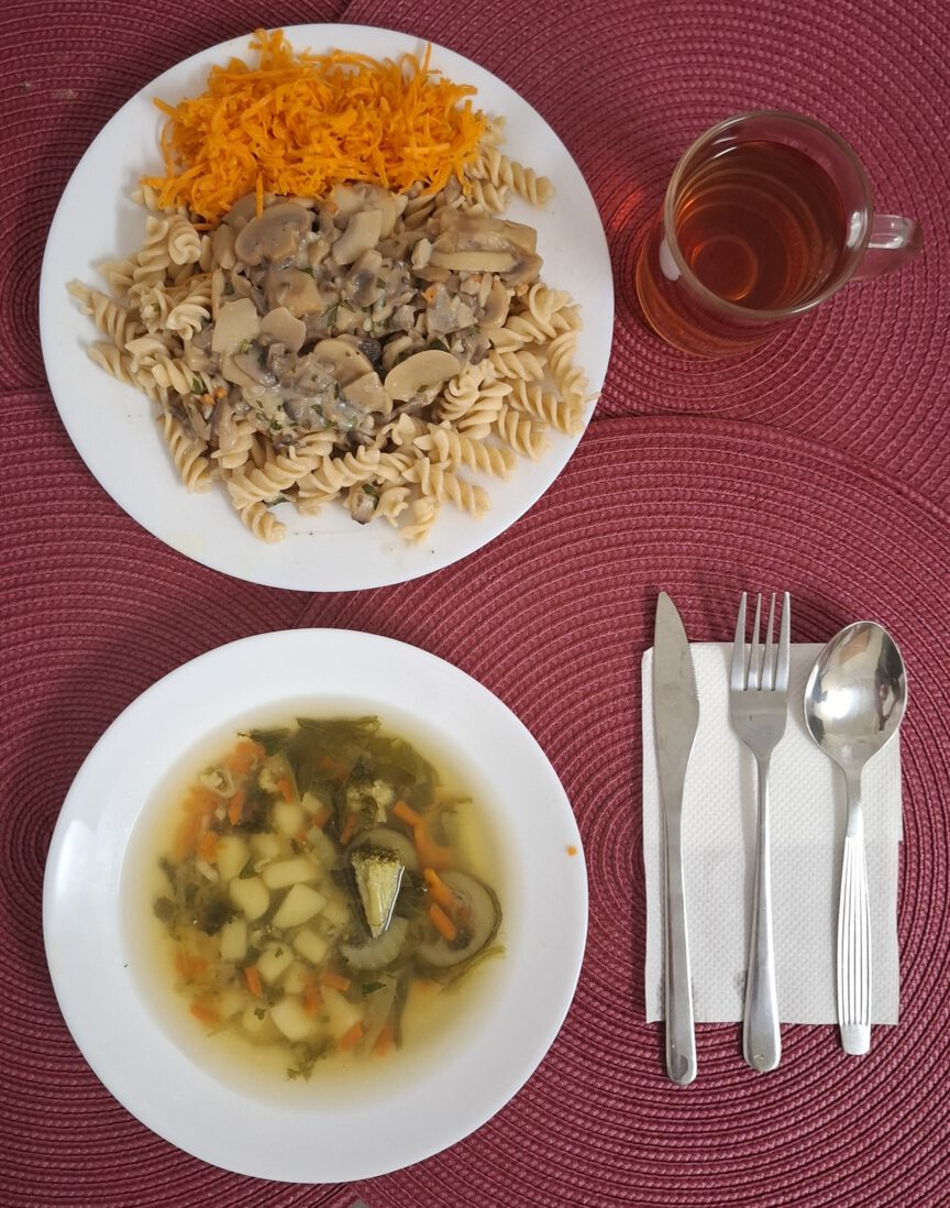 - Makaron z sosem pieczarkowym 300g (GLU, JAJ)